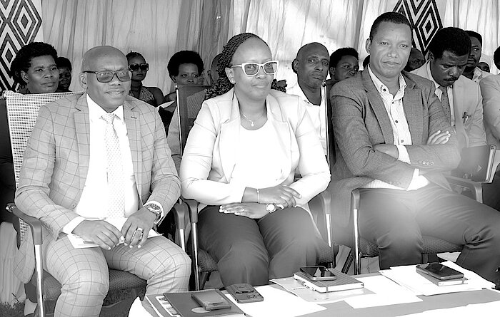 Uhereye ibumoso Ntibitura Jean Bosco , Guverineri w'Intara y'Iburengerazuba, Umutoni Gatsinzi Nadine Umugenzuzi Mukuru w'Uburinganire wa Gender Monitoring Office, Muzungu Gerard , Meya w'Akarere ka Karongi.