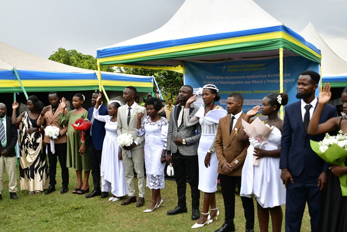 Umuyobozi w’Akarere ka Musanze, Nsengimana Claudien, yayoboye umuhango wo gusezeranya imiryango 35, yiyemeje kubana mu buryo bwemewe n’amategeko, yongerera imbaraga gahunda yo kwimakaza umuryango uhamye n’uburenganzira bw’umwana.